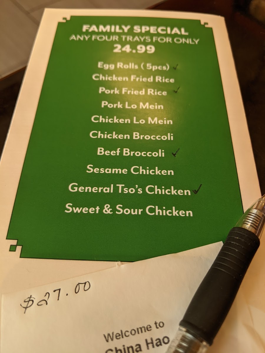 “ I got the Hibachi chicken with noodles as take out. When I got home I noticed the container was well sealed and stapled to prevent spillage. It was packed full and very hot and that was after traveling 15 minutes. The chicken was tasty and not dry. They didn’t skimp on portions at all. The vegetables were cooked perfectly and not overdone. The noodles were moist and not dry or hard. Nice flavor and over all I’m very pleased and will return again. ”